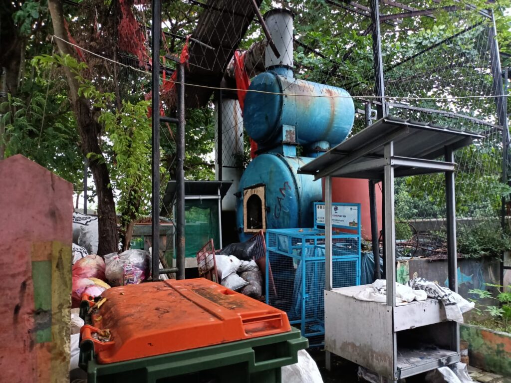 Sampailah kami di satu titik pantai yang kelihatan sangat kotor juga berantakan. Kami melihat ada mesin incenerator alat pembakar sampah yang teronggok tidak terurus dan dikelilingi sampah. “Oh Pulau Pramuka ini menggunakan cara membakar sampah untuk mengelola sampah warganya. Tapi ini mesinnya kelihatan rusak dan tidak terurus. Lalu sampahnya diletakkan dimana”, tanya saya kepada dua teman FAKTA yang berjalan pagi bersama saya. “Coba kita jalan lagi dan sambil mencari jalan untuk keliling pulau”, seorang teman menjawab saya. Kami memang saat itu alami jalan buntu untuk mengelilingi Pulau. Sesampai di titik lain, pinggir pantai yang ditunjukkan oleh peta elektronik sebagai jalan keliling pulau. Kami dihadapkan pada tumpukan sampah sangat beraroma busuk dan menutupi jalan. Sampah karena sangat banyak tumpah menutupi jalan dan pantai sekitar 100 meter.